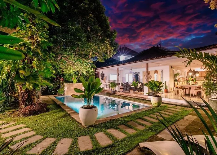 别墅地理位置优越,距离Petitenget Beach海滩2.6公里,距离Dmz博物馆1.1公里。 客人可以在malo's披萨店尝试Europese佳肴。它距离别墅仅350米。 Ryoshi Seminyak House of Jazz也在别墅附近。
